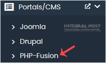 4. On the left side, locate the Portal/CMS category. Click on it and then on the PHP-Fusion link that appears.