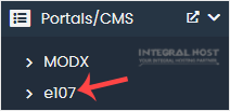 4. On the left side, locate the Portal/CMS category. Click on it and then on the e107 link that appears.