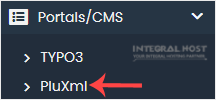 4. On the left side, locate the Portal/CMS category. Click on it and then on the PluXml link that appears.