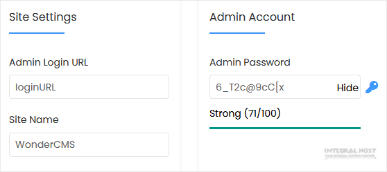 • Site Name: Enter the name of your website, such as WonderCMS.